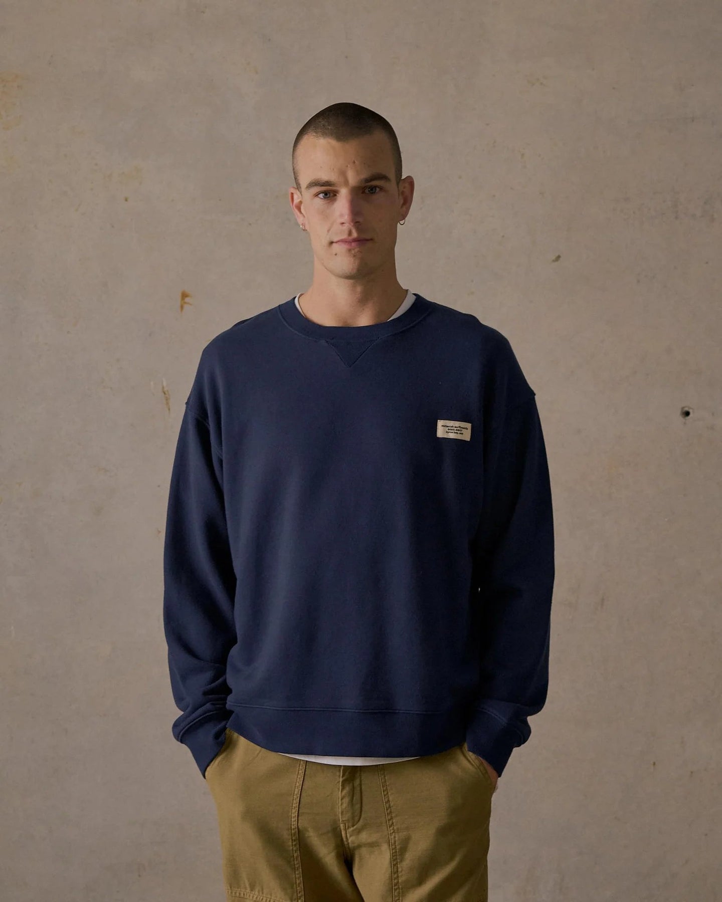 Our classic crew in a warm 460g organic cotton french terry fleece features the Mctavish Hotline (our actual shop number) stitched onto the front. Available in Dark Blue and Brown to go with everything you already own.