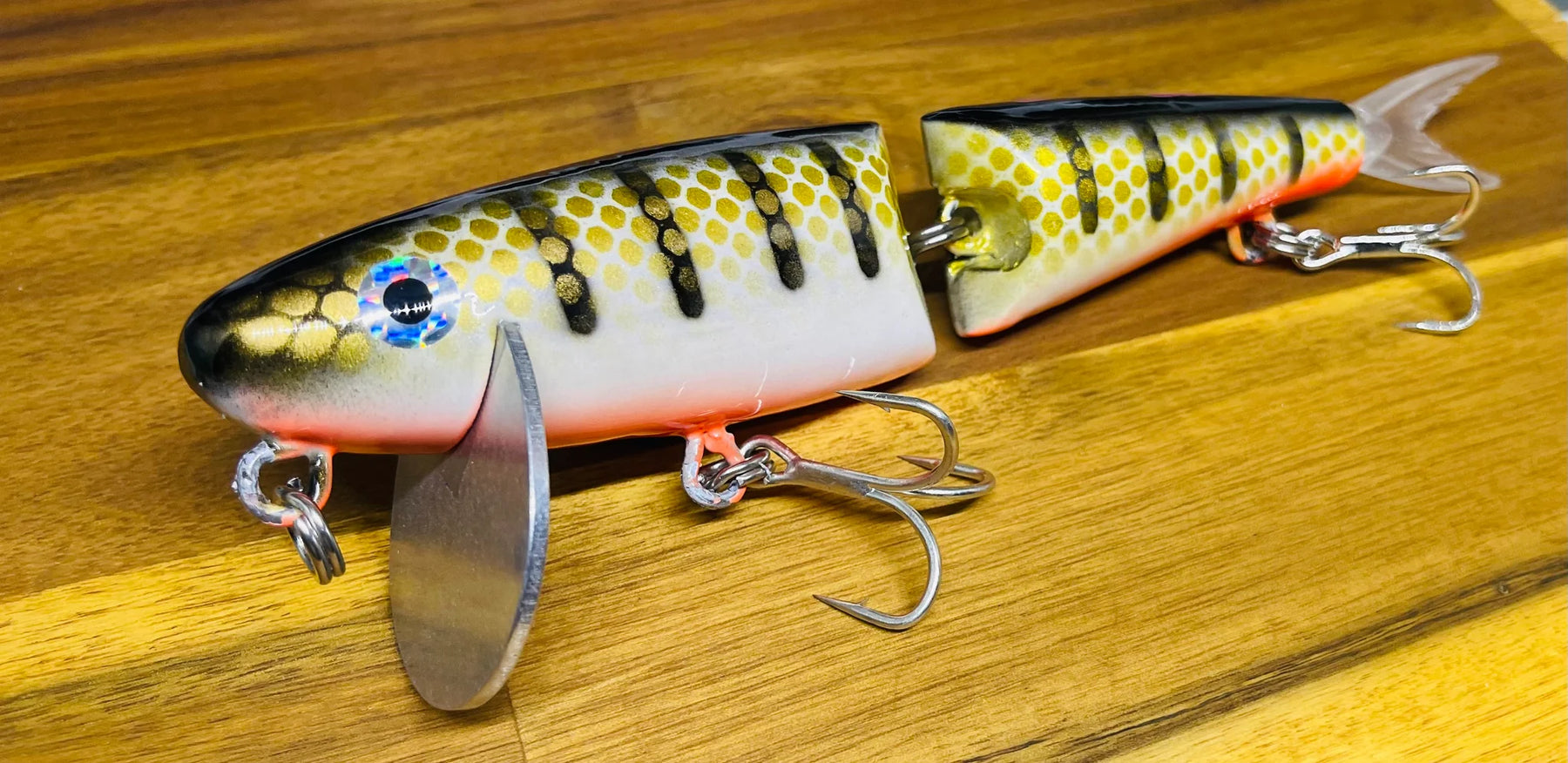 The Croaker Agitator is a timber wake bait designed for enticing those surface eats from aggressive species, in particular the Murray Cod, Mulloway and Barramundi. The Agitator is very appealing on a slow roll with its life like wake and subtle knocking sound.
